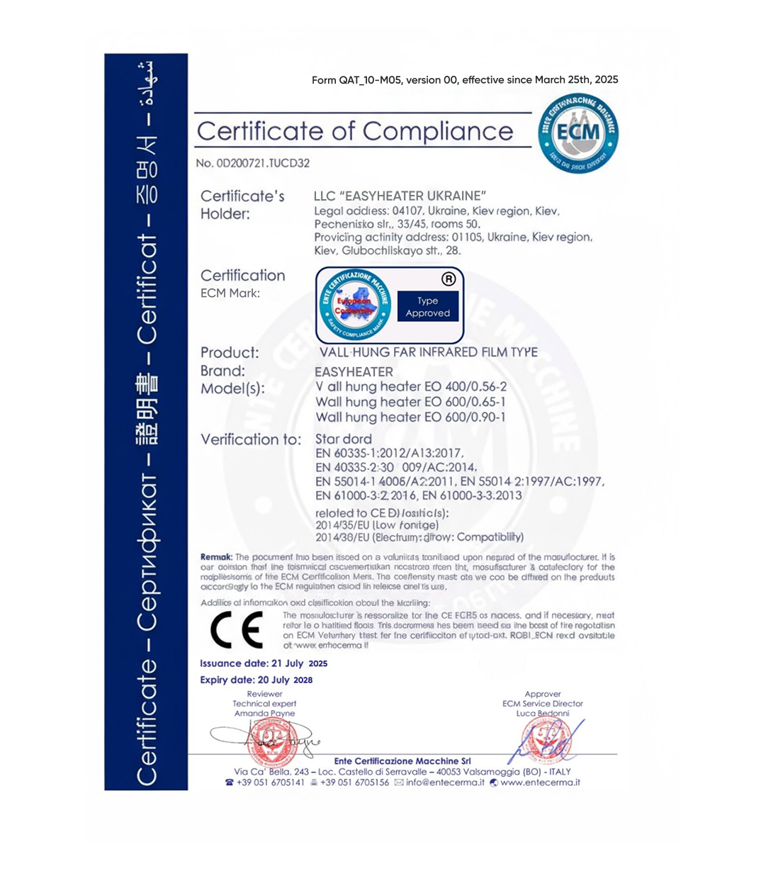 Ekonomický nástěnný infračervený ohřívač – „EasyHeater”
