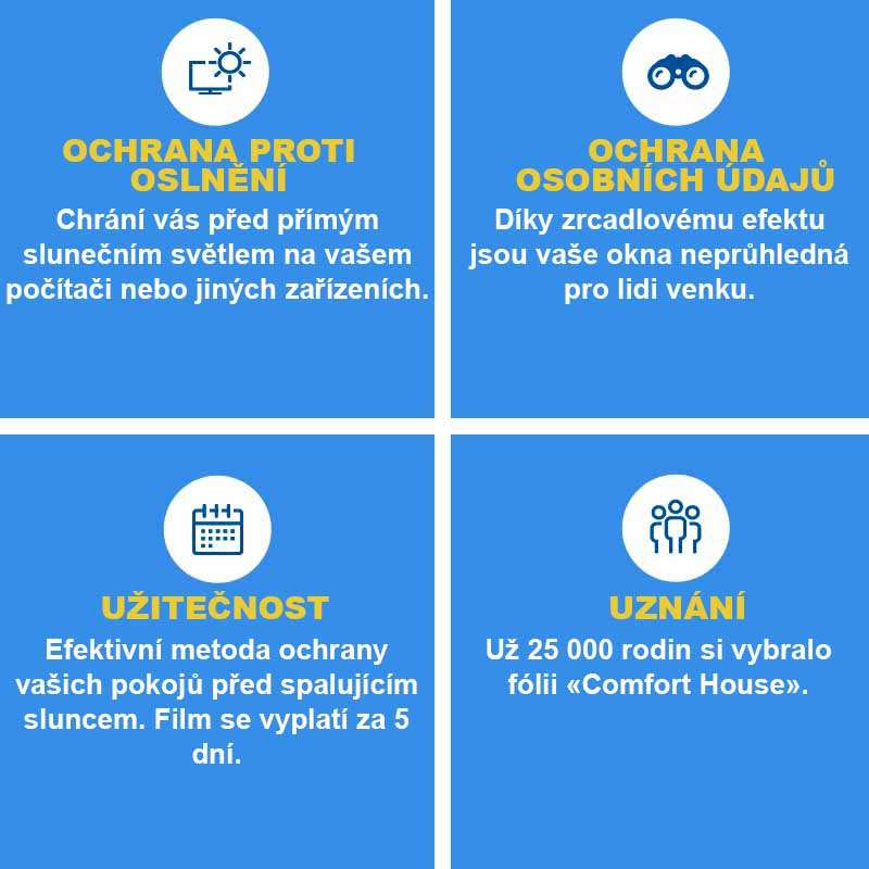 Zrcadlová sluneční fólie „Comfort House“ na okna